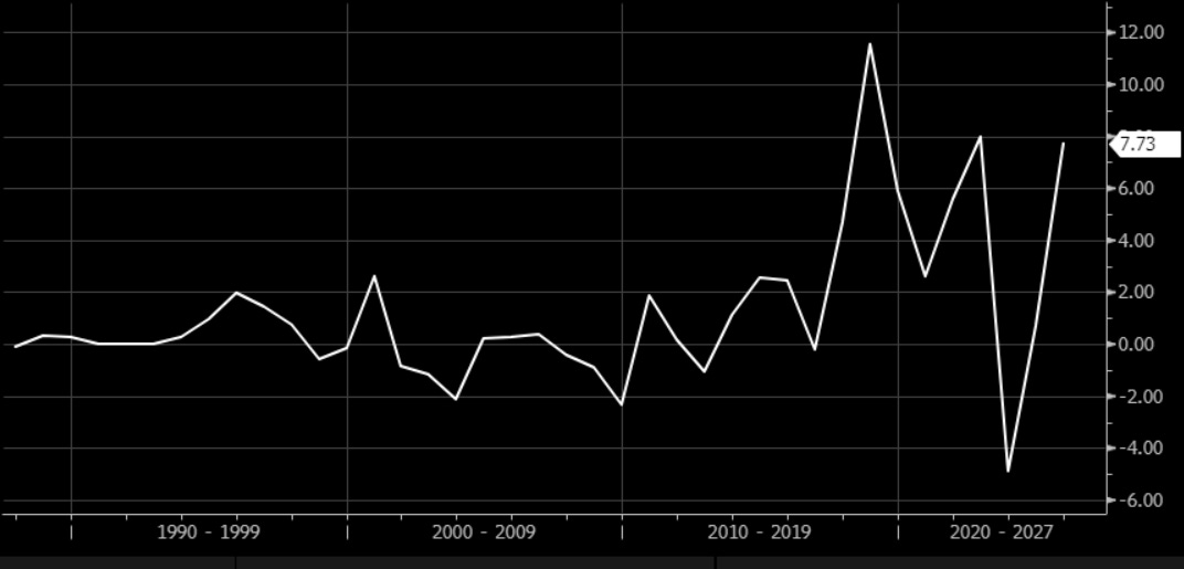 The chart below shows how volatile Micron’s earnings have been over time. As recently as 2023, the company lost $4.89 per share.