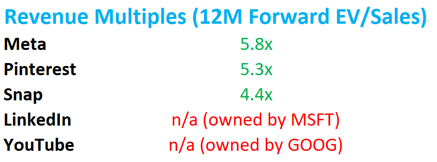 You have Meta and Pinterest trading at around 5 to 6 times revenues, while Snap is trading closer to 4 times revenues.