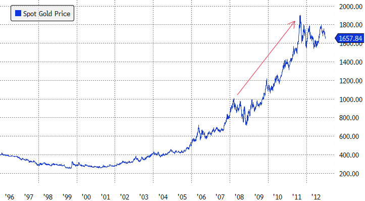Gold didn’t just recover from the financial crisis. It surged from around $1,000 in 2008 to over $1,900 an ounce by 2011.