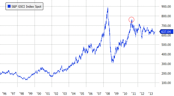 Commodities had already peaked in 2008 on the back of the China and emerging-markets boom. They collapsed during the financial crisis and then rebounded sharply. By 2011, prices for oil, copper, corn, and a long list of other raw materials were back near their pre-crisis highs.